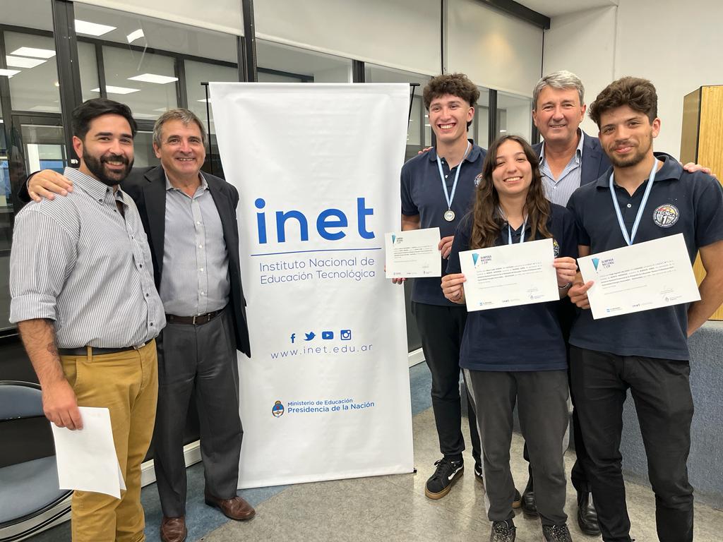 Los montehermoseños recibieron el premio de manos del director Ejecutivo del INET, Prof. Gerardo Marchesini y del director de Educación Técnica de la Dirección General de Cultura y Educación de la Provincia Buenos Aires, Prof. Mariano Ferrari.