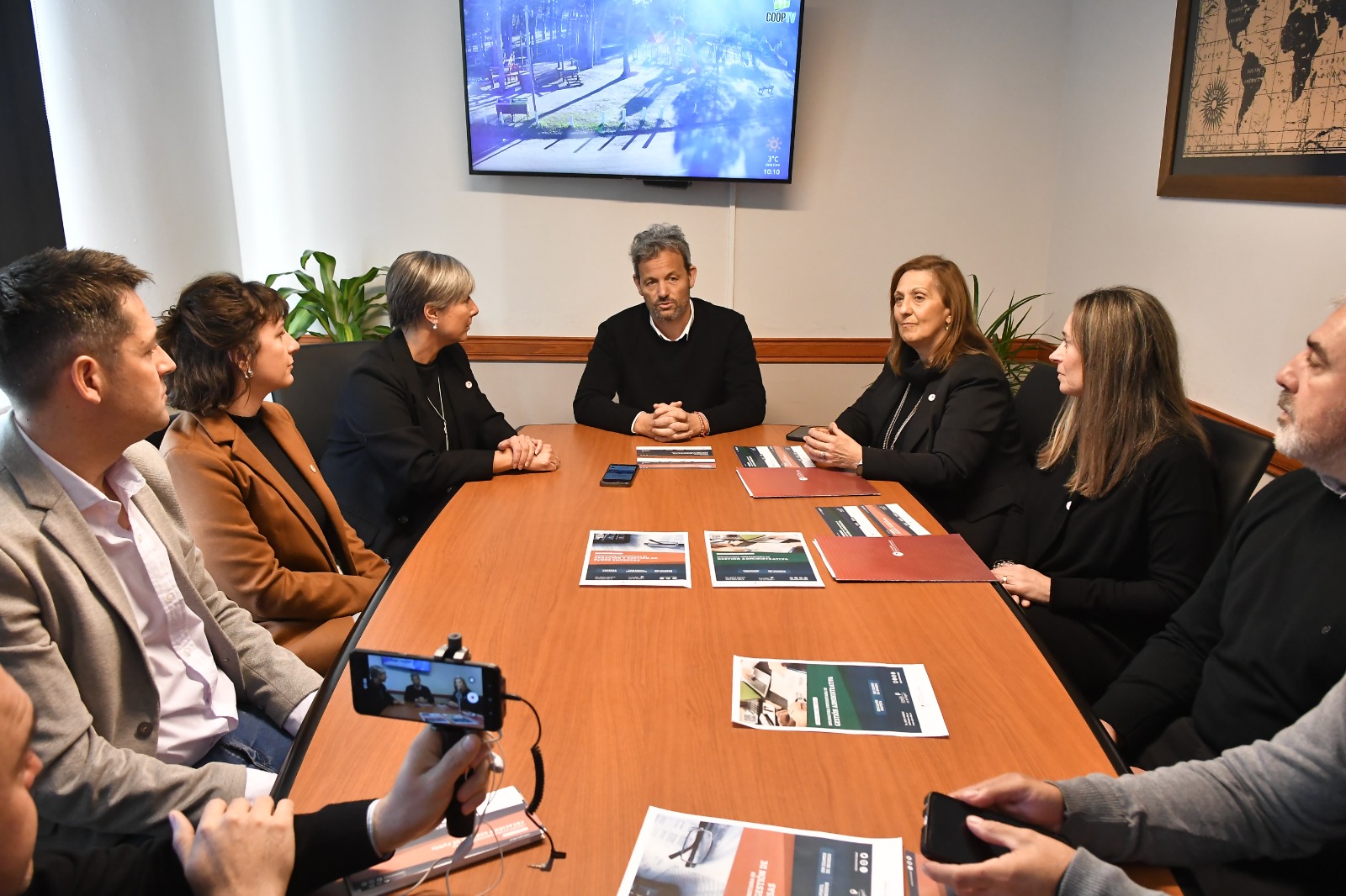 También participaron de la reunión la decana de la Facultad de la Micro, Pequeña y Mediana Empresa, Alexia Postemsky, junto a su secretaria académica, Camila Iparraguirre; el presidente del Consejo Escolar, Ariel Llerandi, y la consejera María Laura Ocaña; el jefe Distrital de Educación, Julio Bello, y el secretario Académico de Monte Hermoso, Juan Alonso.